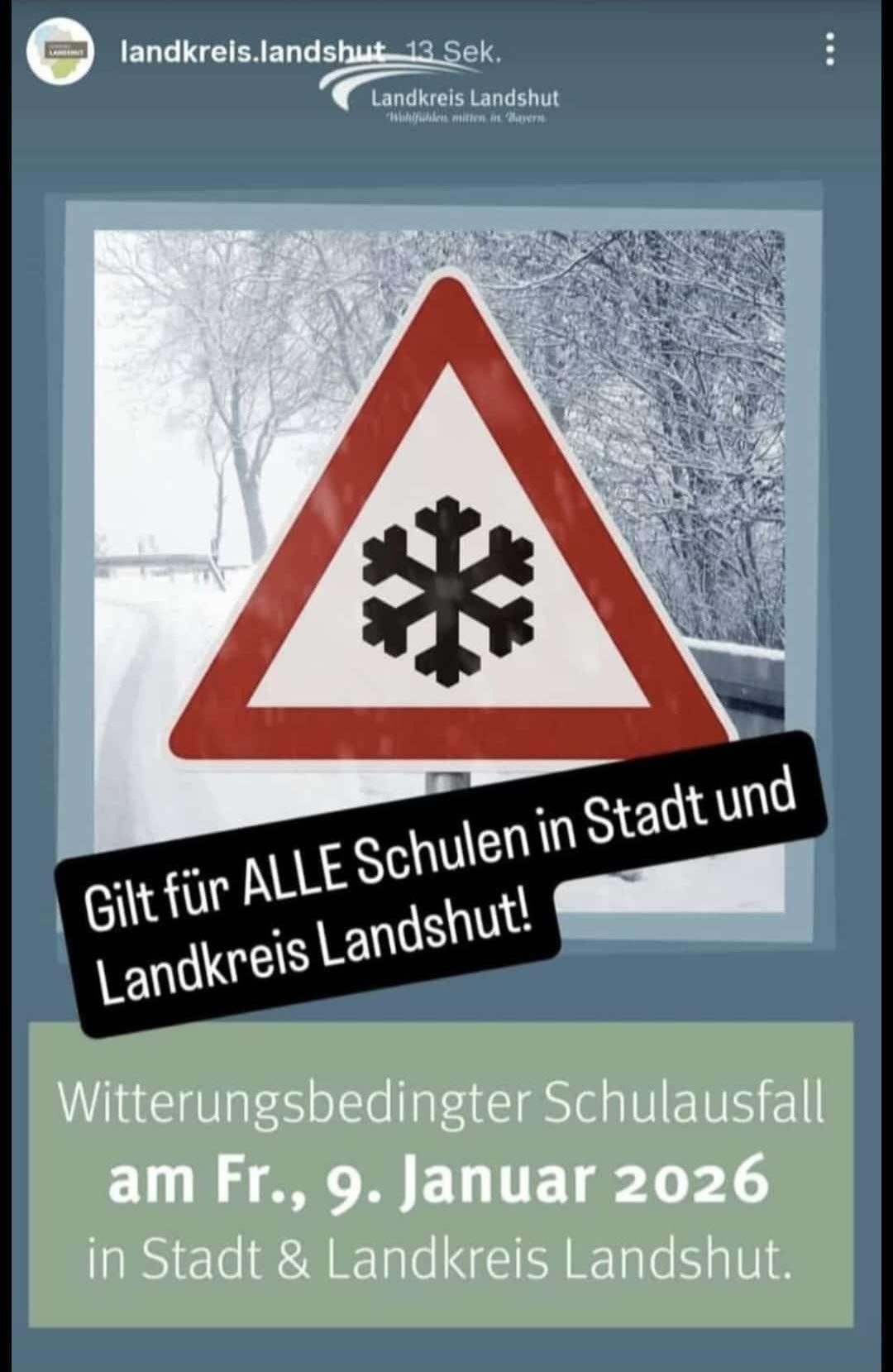 GMS Essenbach - Die Schule entfällt heute, Freitag 09.01.2026, wegen der Wetterlage