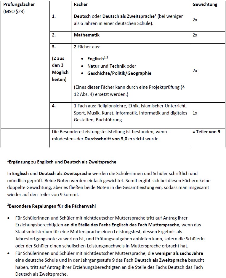 Qualiberechnung für externe Schüler (mit Projektprüfung)